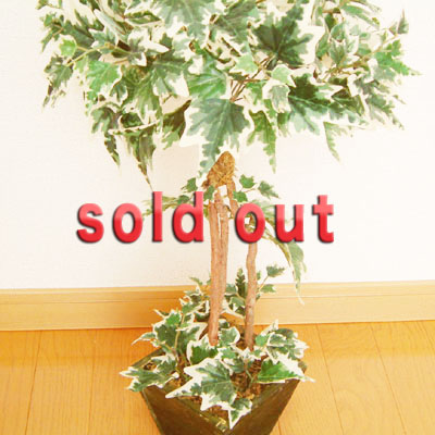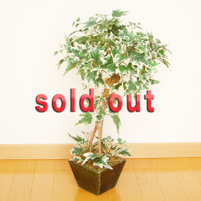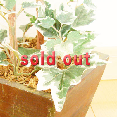 ガーデングリーンで塗られた木の鉢にポーランドアイビーの葉がたくさんついた、いい感じのトピアリーです。